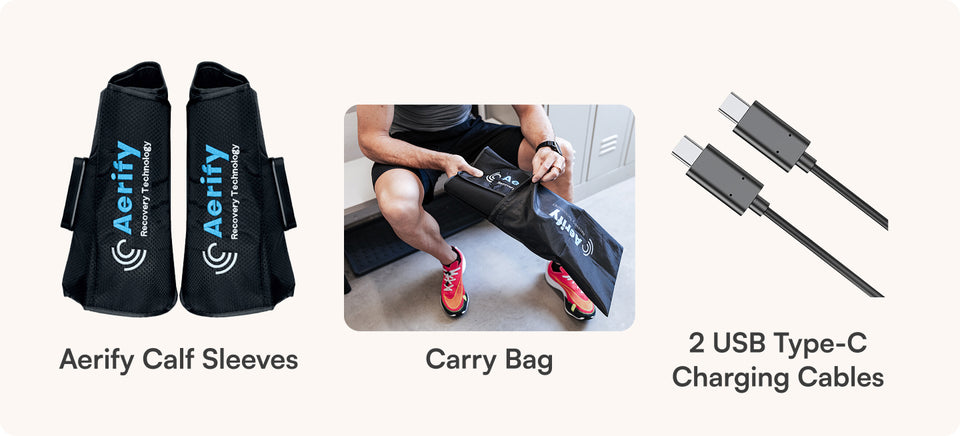 Say goodbye to sore and tired calves forever! Aerify Calf Sleeves bring compression and heat therapy to your calves - fully wireless & portable.
