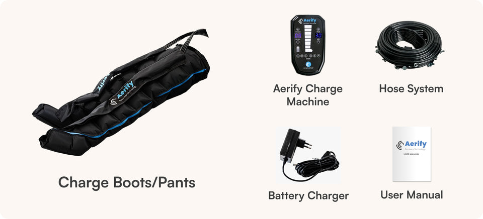 Aerify Charge uses air compression to enhance blood circulation, whereas traditional massages rely on manual pressure. Enjoy the benefits anytime, anywhere with the portable system!
